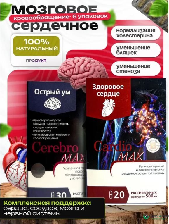 Комплекс при атеросклерозе сочетает капсулы Кардиомакс, Здоровое сердце и Церебромакс, Острый ум для комплексной поддержки сердечно-сосудистой и нервной систем.